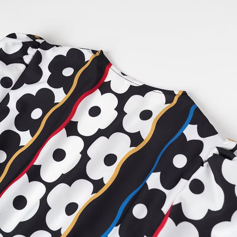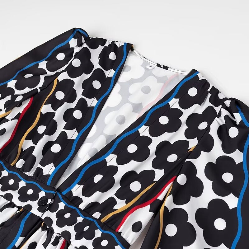 Fashion Elegant Deep V-Neck Printed Long Sleeve Dress