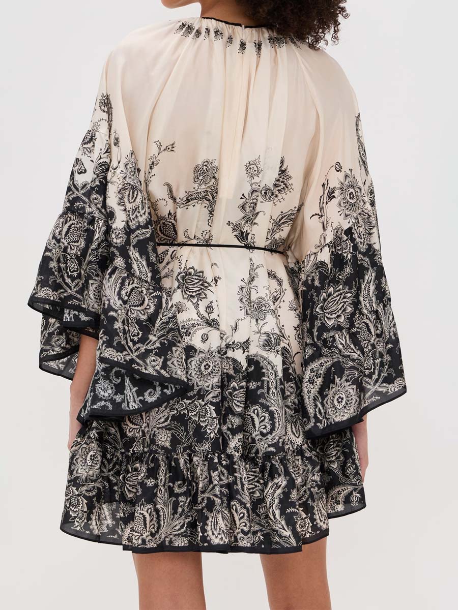 Floral Print Tie Waist Mini Dress
