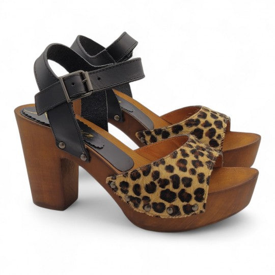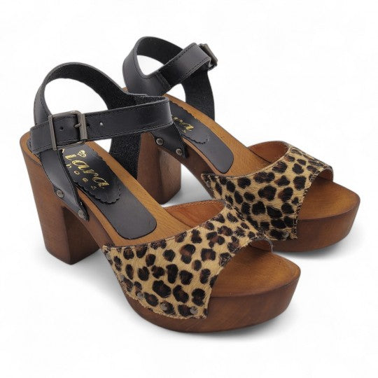 Handmade Leopard - Print Leather Open - Toe Sandals