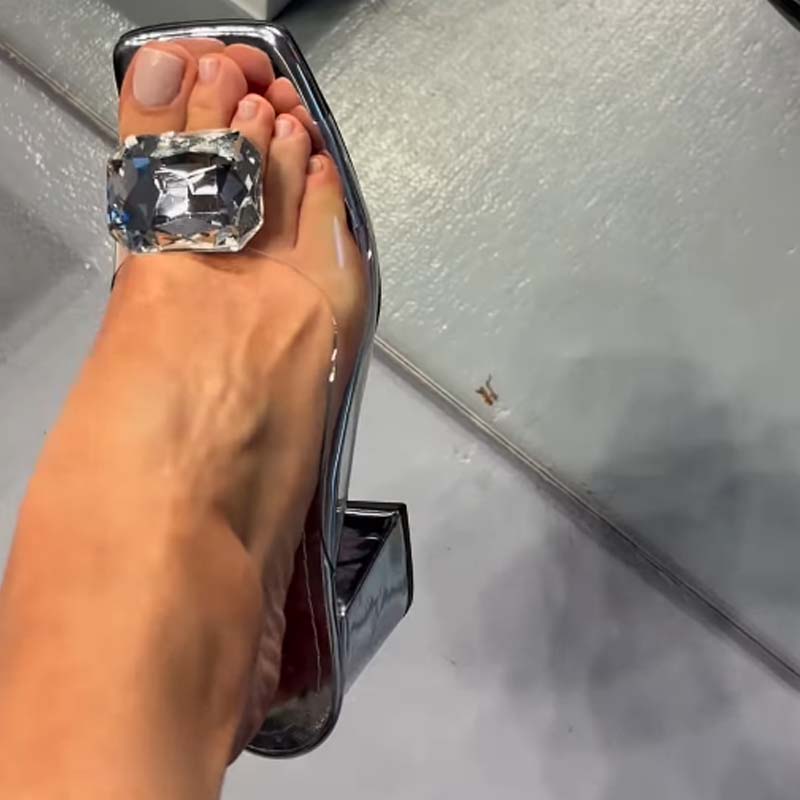 Rhinestone Sparkle Thick Heel Transparent High Heel Slippers
