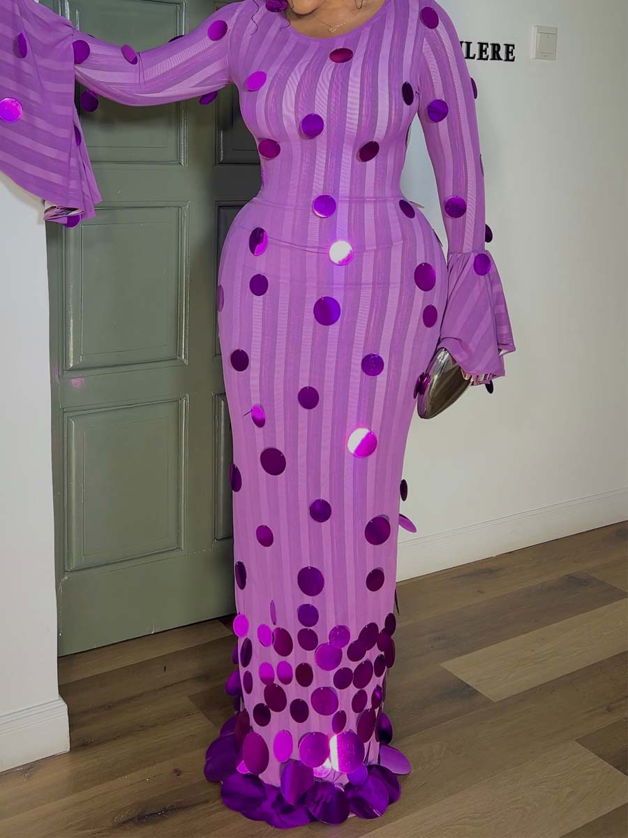Sequined Patchwork Flare Sleeve Dress