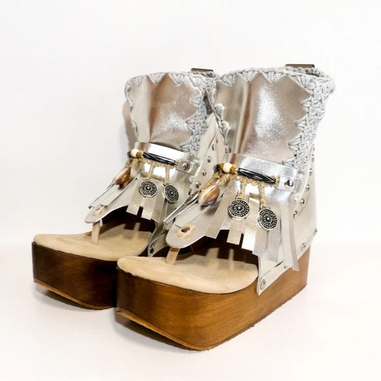 Silver Embellished Platform Gladiator Sandals